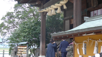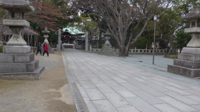 久留米の水天宮の本殿。おみくじを売る屋根のついた販売機はロケ当時にはなかったようだ。
