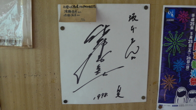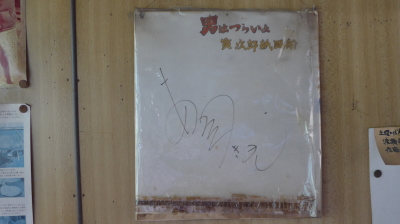 写真と渥美清のサイン色紙があり、写真を撮らせていただいた。下の写真の色紙のサインは佐藤友美で寅さんとは