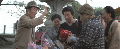 久留米の水天宮で寅さんが啖呵売をしているシーン。