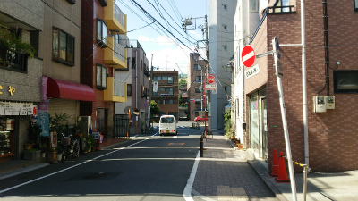 ロケ当時の東京屋のあった場所は横断歩道の向こうの柵で囲まれた緑地帯あたりではないかと思われる。