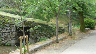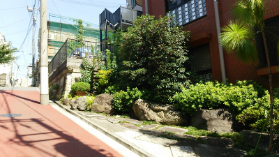 このようなことは他のロケ地でもしばしばある。隣の石垣とブロックの重ねてある壁はツタで覆われているが