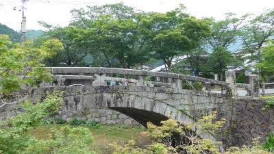 愛子の後ろに石碑の頭の部分が写っているが、これはこの橋を作った人の石碑らしく橋の反対側に移されていた。