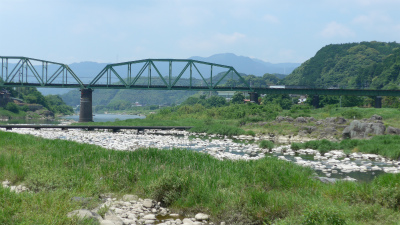 寅さんが渡った沈下橋と陸橋。のどかな良い所である。