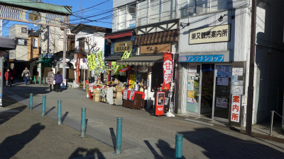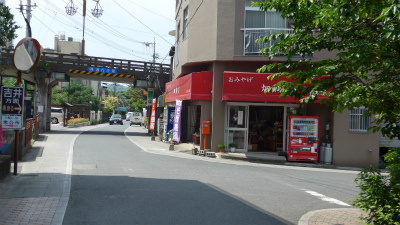 寅さんが光枝の勤める旅館に行く途中の道。店頭にティシュペーパーやトイレットペーパーを出している店は