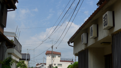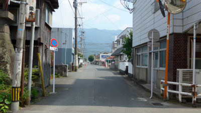 突き当たりの建物は変わってないようだ。「鳳名館」という旅館の看板は同じようだ。