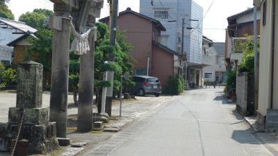 むこうに見える3階建ての建物も同じ。実はその建物の向かいに後で出てくる月読神社がある。