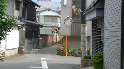十字路の左の向こう側の角が愛子が飛びだしてきたところ。