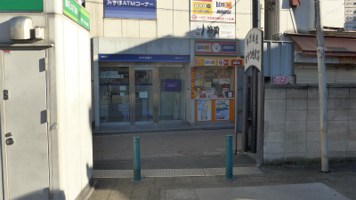 二人の話している背景にあるのはシャッターが閉まっているが何かの店舗らしい。今はATMになっている。