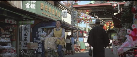 光枝が寅さんに会いに柴又まで来て駅を降りてとらやに向かうシーン。